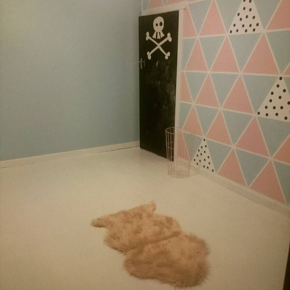 Then I added black spotty wall stickers to the white triangles: